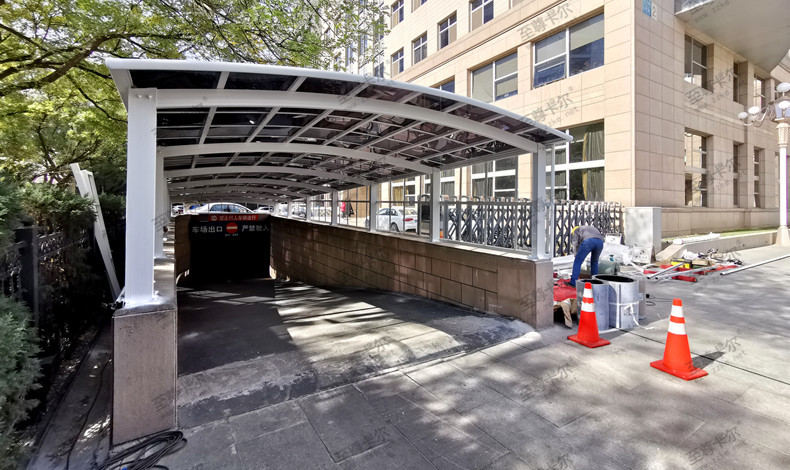 新型地下停車場雨棚你見過嗎?至尊卡爾雨棚!說起雨棚,大家的反應就是最常見的玻璃材質,對玻璃這一材質大家是非常熟悉的,透明的,也有不少地下停車場雨棚都是使用的玻璃