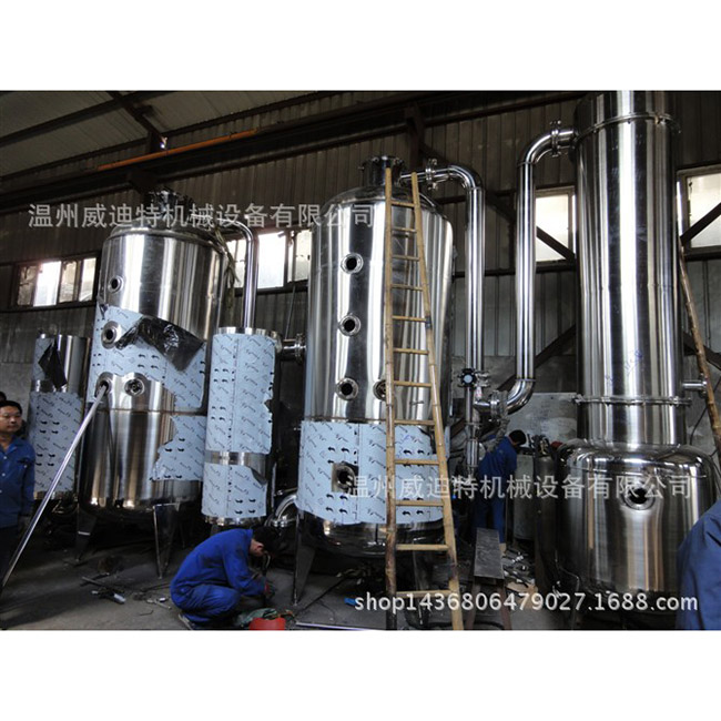 三效濃縮提取罐的應用:對進料時的料液分布與管內的流動我們采用先進的液體分布裝置,使物料能均勻分布在管內的流動我們采用先進的液體分布裝置,使物料能均勻地進入各加熱管,同時,濃縮罐廠家選用優良進口的內壁鏡面管作加熱管,使物料在管內的流動阻力小、速度快,酒精濃縮罐,不易析出結垢。為提高濃縮罐的收率,系統裝備先進的霧沫捕集器,消除霧沫夾帶的能力強,分離效率可達96-99%,而且阻力降小。三效濃縮提取罐適用于中藥、西藥、淀粉糖、食乳品等物料的濃縮,尤其適用于熱敏性物料的低溫真空濃縮罐。