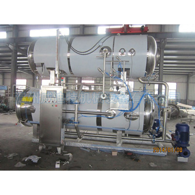 利用鍋內(nèi)轉(zhuǎn)換的熱水循環(huán),浸泡式殺菌,在工作過程中,對(duì)鍋內(nèi)溫度壓力、殺菌時(shí)間、進(jìn)汽、排汔、進(jìn)水、排水等過程。