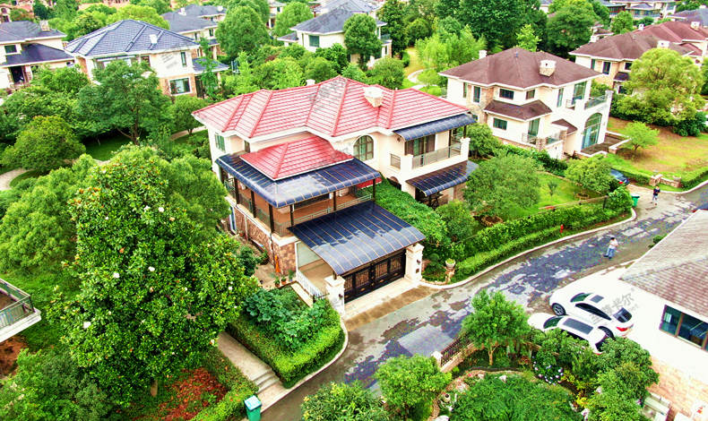 而且整體效果可以看出非常美觀,深色的別墅雨棚頂于整體紅頂黃面的別墅相得益彰,為別墅添加了一抹穩重、大氣的顏色。
